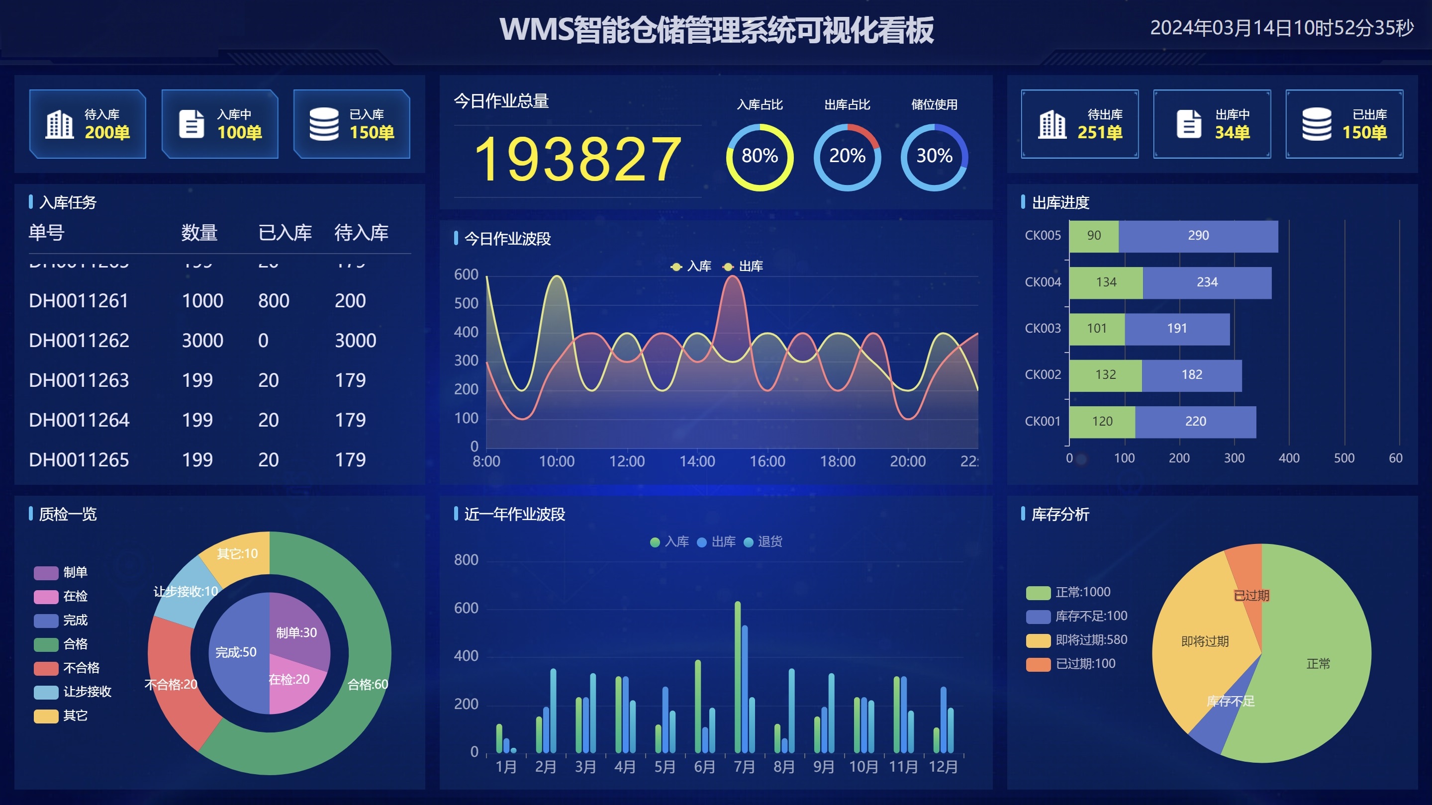 WMS智能倉儲管理係統可視化看板
